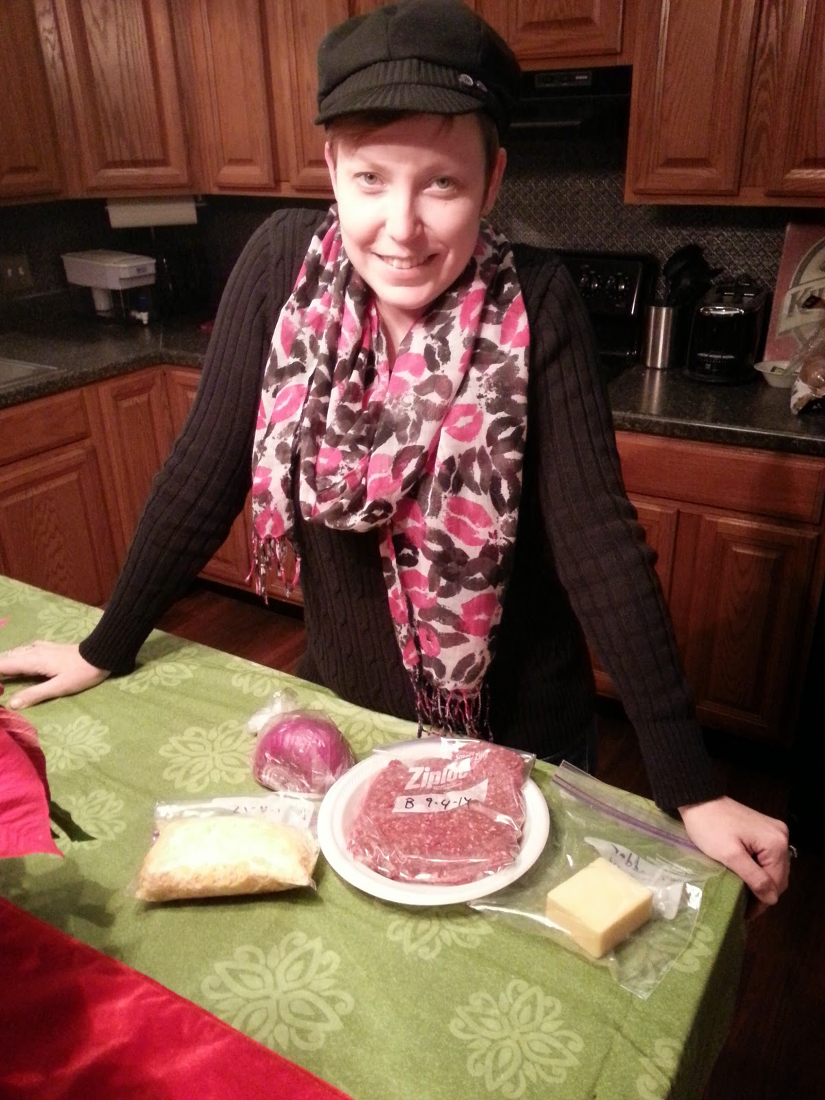 Ground beef, shredded colby jack cheese, red onion, and Irish white cheddar! What to do, what to do? What would you do?